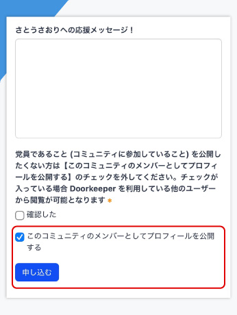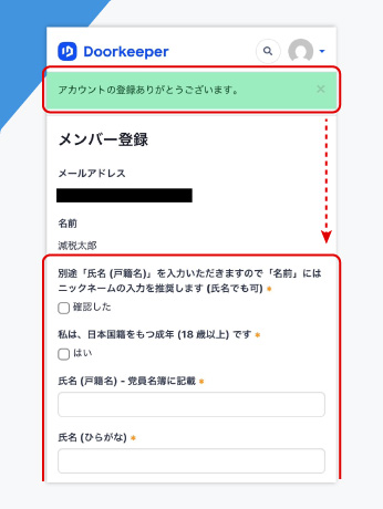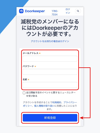 「Doorkeeper」にアクセスし、下記の手順で会員登録したうえで、入党してください。
